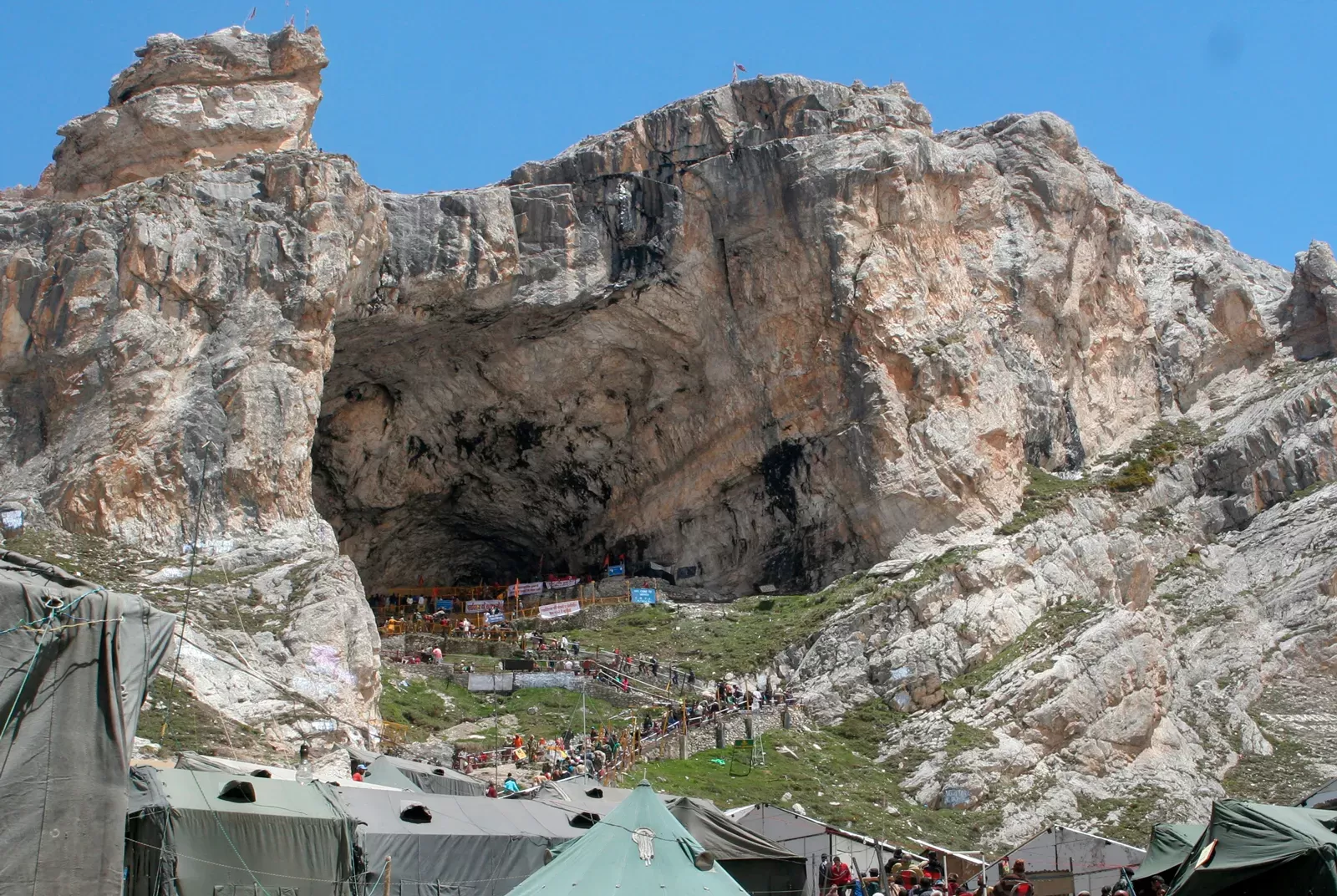 Pilgrims trek along the sacred Baba Udgam Marg to reach Amarnath Cave.