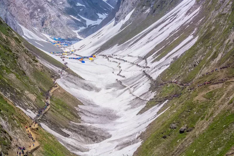 The trek follows Baba Udgam Marg to reach Amarnath Cave.